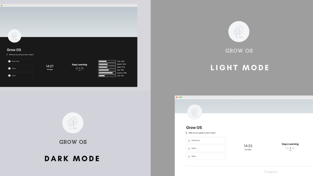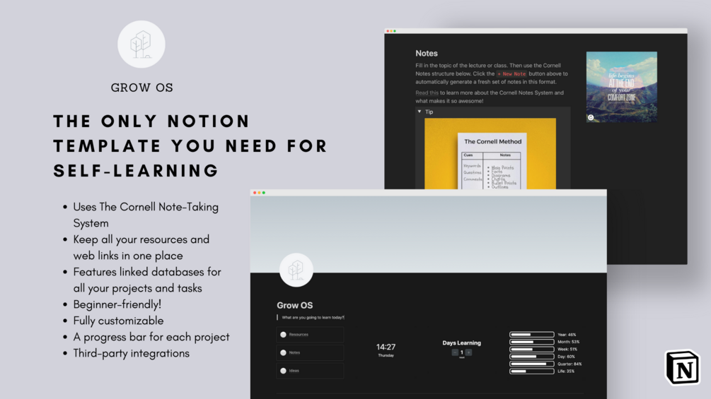 Grow OS - the only Notion template you need for self-learning.