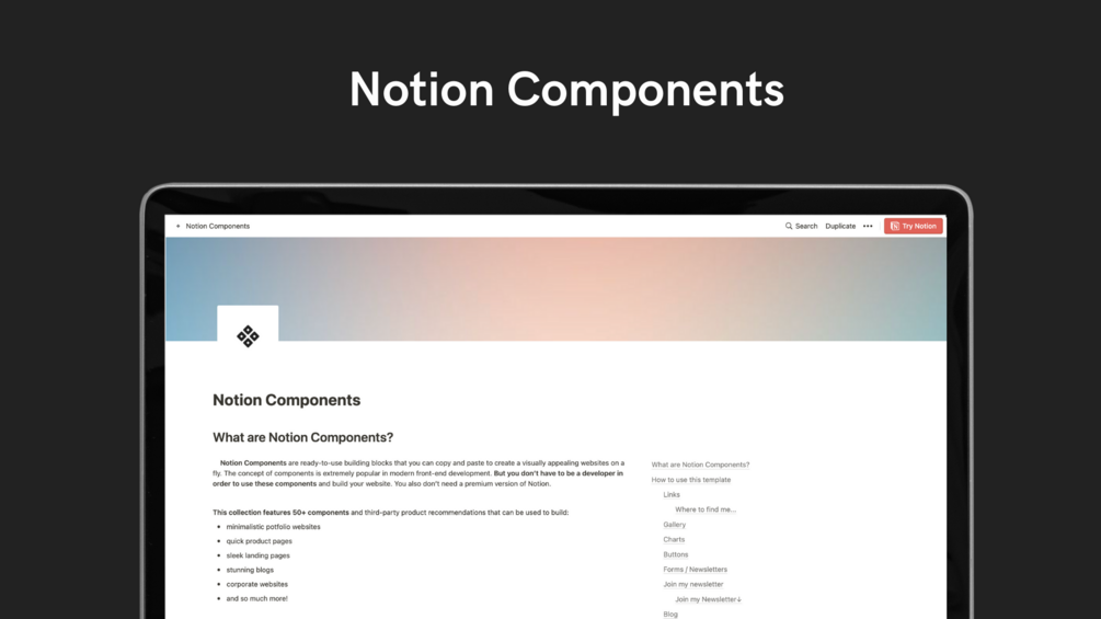 Notion Components are ready-to-use building blocks that you can copy and paste to create visually appealing websites on the fly. The concept of components is extremely popular in modern front-end development. But you don’t have to be a developer in order to use these components and build your website. You also don’t need a premium version of Notion.