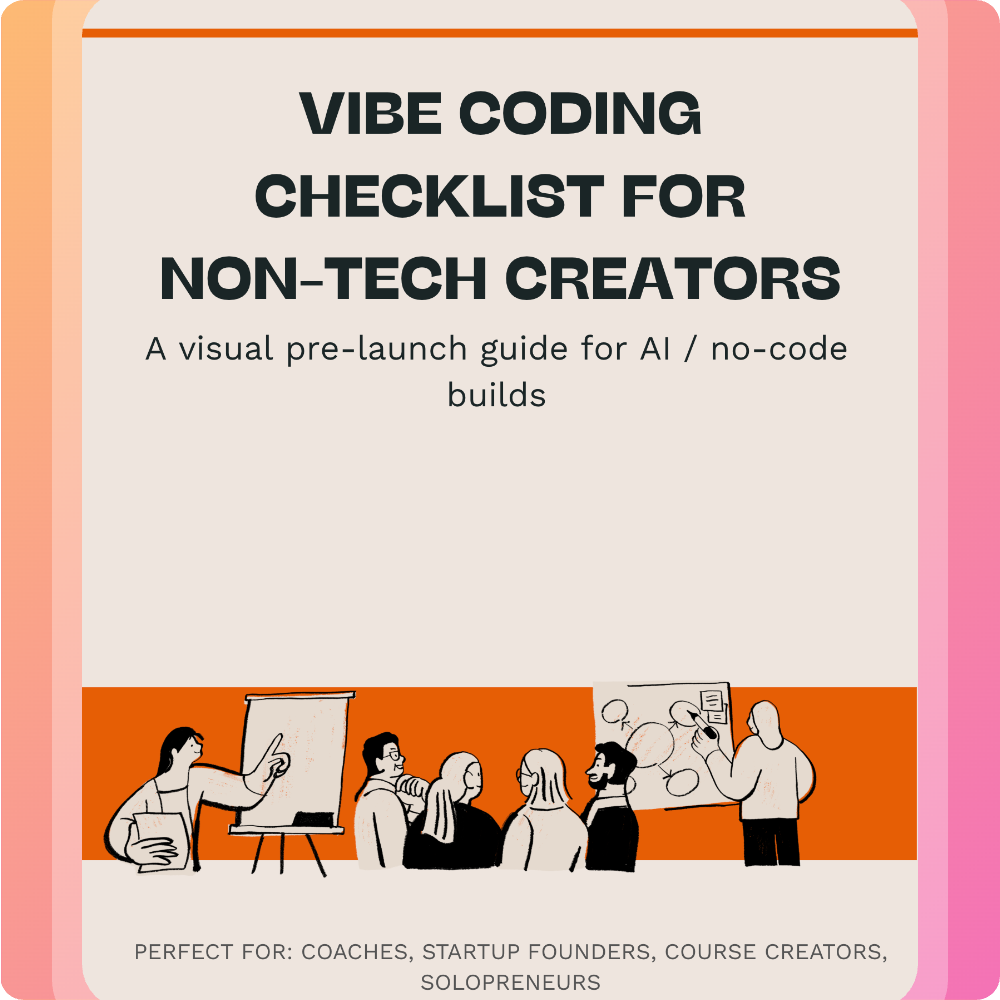 Vibe Coding Safety & Launch Checklist is a 9‑page, non‑technical PDF that helps you ship AI/no‑code projects without scary mistakes or embarrassing glitches. It’s designed for creators, coaches, and solopreneurs who build funnels, portals, and mini‑apps with AI but don’t speak “developer.”